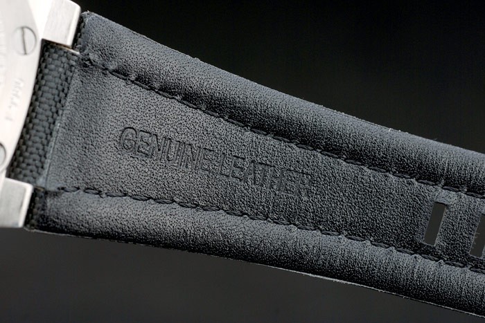 Bracelet stål: svart tyg fodrad Audemars Piguet värme präglade läderband med logotyp ingraverad borstat hak- rostfritt stål clasp