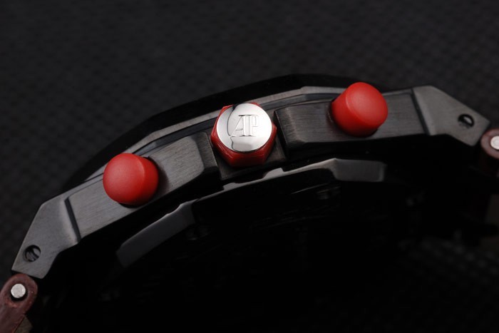 Crown: Röd gummi hexagonal krona med initialerna AP på stud rostfritt stål plus en rund röd gummi krona på vardera sidan om it