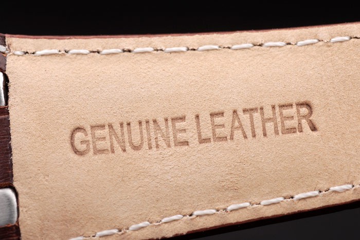 Bracelet: Heat präglade Audemars Piguet brun krokodil läderband med vita sömmar och Audemars Piguet graverad Rose- guldpläterad vika in clasp