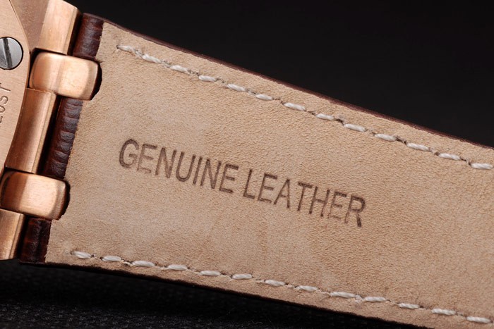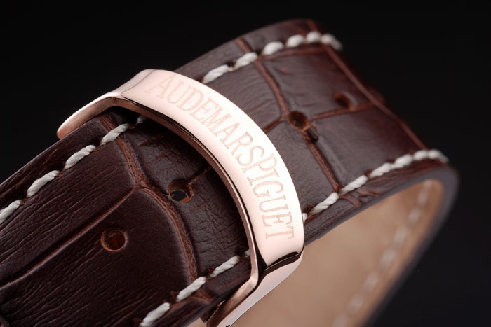 Bracelet: Heat präglade Audemars Piguet brun krokodil läderrem med Audemars Piguet graverad Rose-guldpläterade vika in clasp
