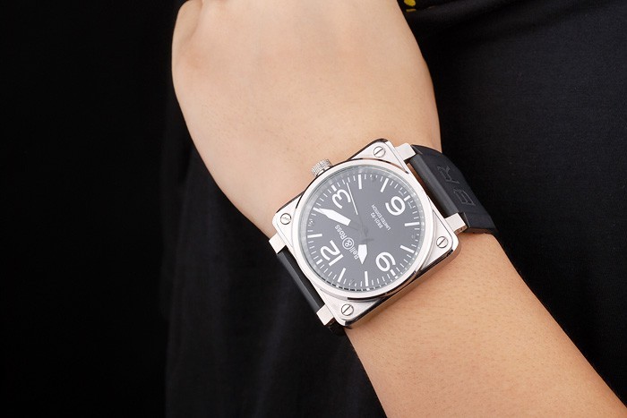 Tillbaka: borstat rostfritt stål skruvas ned tillbaka med Bell & Ross inscriptions