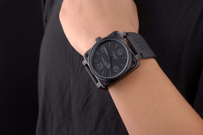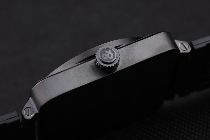 Tillbaka: Ion-plated rostfritt stål skruvas ned tillbaka med Bell & Ross inscriptions