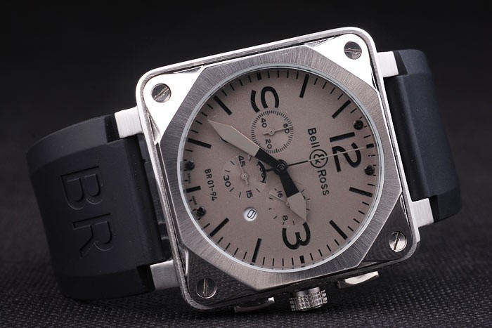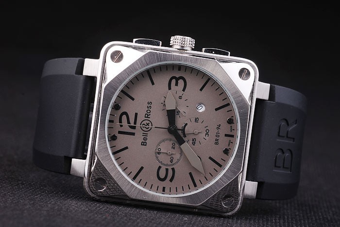 Crown: rostfritt stål cutwork krona med Bell & Ross logotyp och en kvadrat krona på vardera sidan av huvud crown