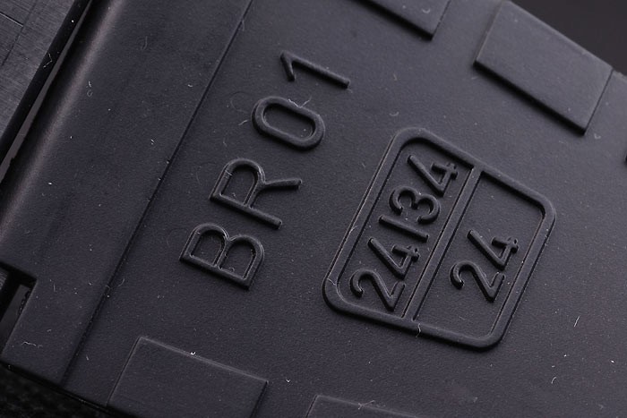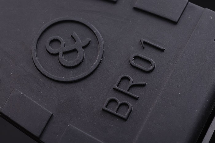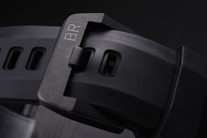 Bracelet: Svart gummiband med värme präglade logo, modellnummer och produktkoden och BR graverad jon-klädd krok-spänne spänne