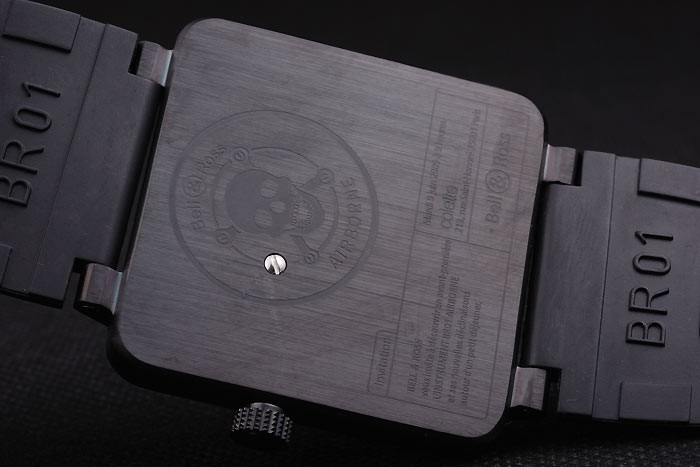 Tillbaka: Ion-plated rostfritt stål skruvas ned tillbaka med Bell & Ross inscriptions