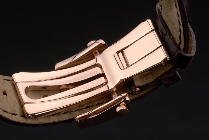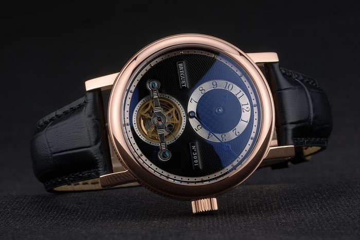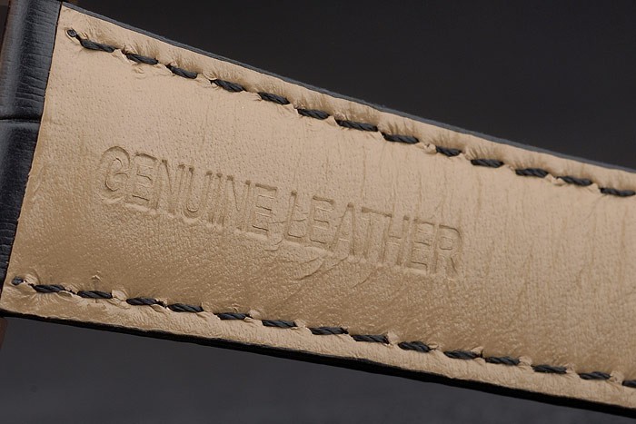 Bracelet: Breguet värme präglat svart krokodil läderrem Brequet graverad med 18k steg-guldpläterade vika in krok spänne clasp