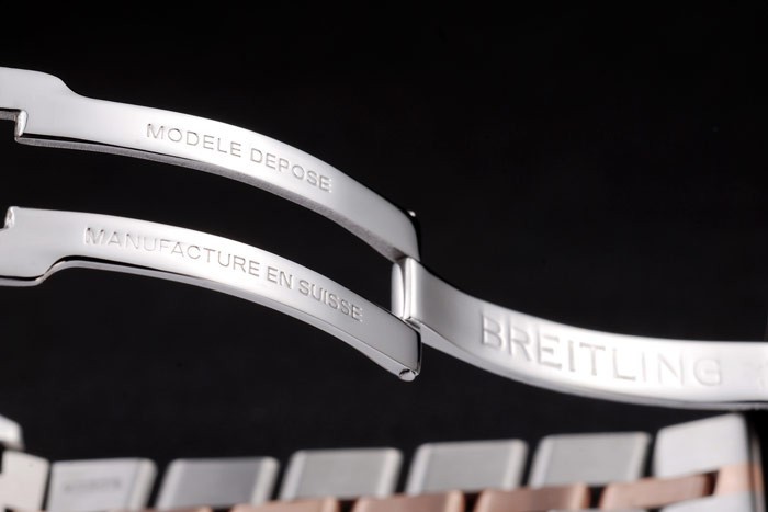 Bracelet: Polerat rostfritt stål och rose-guld länk armband med datum och Breitling graverad gånger i clasp