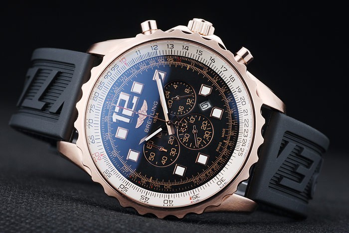 Bracelet: Svart gummiband med Breitling logotyp ingraverad steg-guldpläterade krok spänne clasp