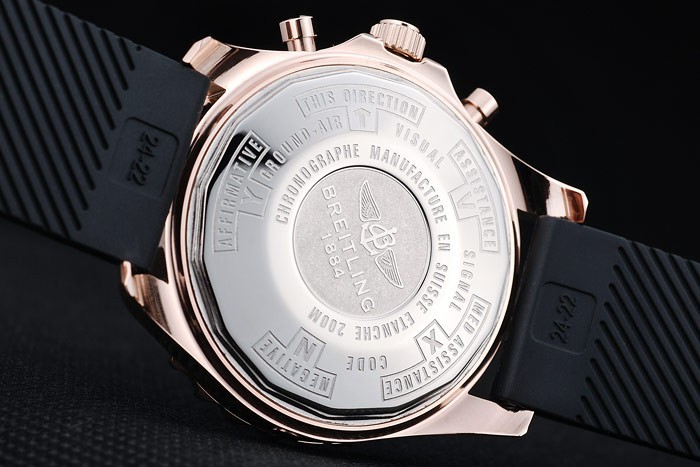 Denna klocka har AR glas. Ansiktet färg visas olika färger beroende på hur ljuset faller på itBack: Polerat rostfritt stål snap-in tillbaka med Breitling engravings