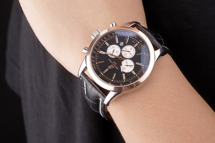Denna klocka har AR glas. Ansiktet färg visas olika färger beroende på hur ljuset faller på itBack: Rostfritt stål snap-in tillbaka med Breitling inscription
