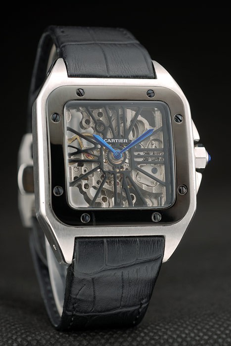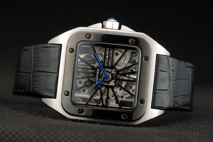 Bracelet: Cartier värme präglat svart krokodil läderrem med borstat rostfritt stål snap-in lås med tryckknapp frigör på side