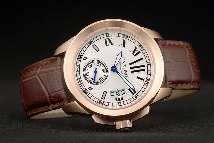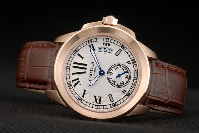 Bracelet: Cartier värme präglat brunt krokodil läderrem med ökade guldpläterade spänne clasp