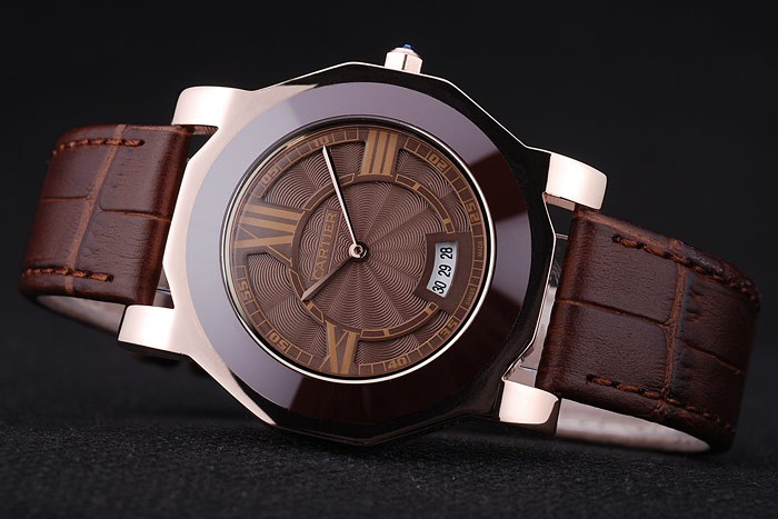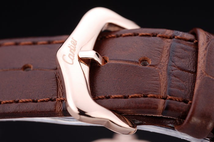 Bracelet rostfritt stål: Heat präglade Cartier brun krokodil läderrem med Cartier Dedikerat rose-guld krok spänne clasp