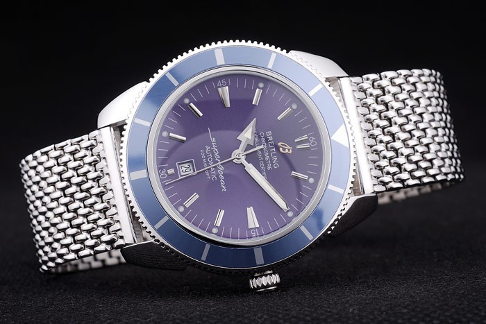 Bezel: Blå lackerad cutwork bezel med silver timme markers