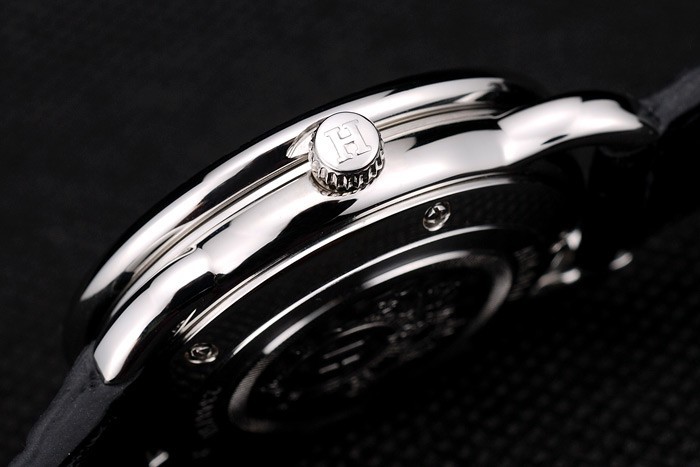 Bracelet rostfritt stål: Svart krokodil läderrem med värme präglade stämpel Armband Hermes och Hermes grav rostfritt stål krok-spänne