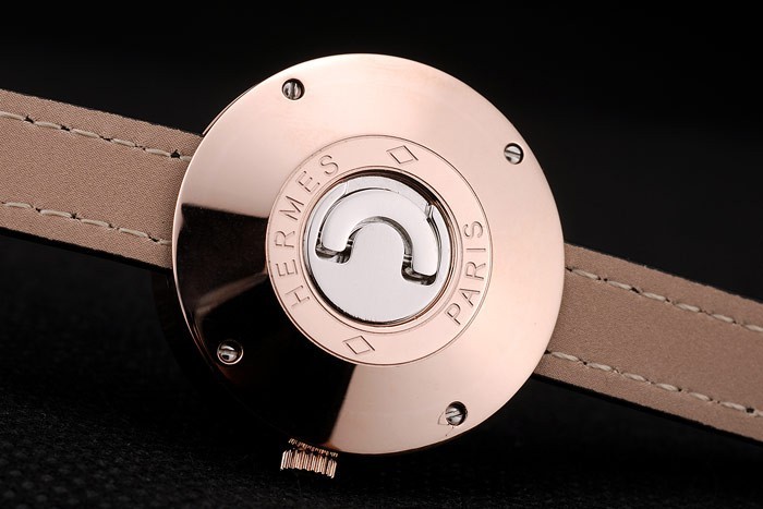 Tillbaka: Rose-guldpläterade skruvas ned tillbaka med rostfritt stål centrum och Hermes Paris engraving