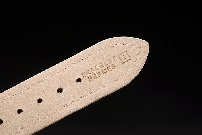 Bracelet rostfritt stål: Vit läderrem med värme präglade stämpel Armband Hermes och Hermes graverade polerat rostfritt stål krok spänne spänne