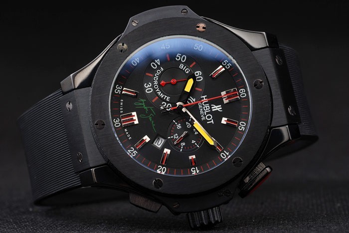 Denna klocka har AR glas. Ansiktet färg visas olika färger beroende på hur ljuset faller på itBack: Rostfritt stål skruvas ned tillbaka med Hublot inskriptioner och Ayrton Senna stamp