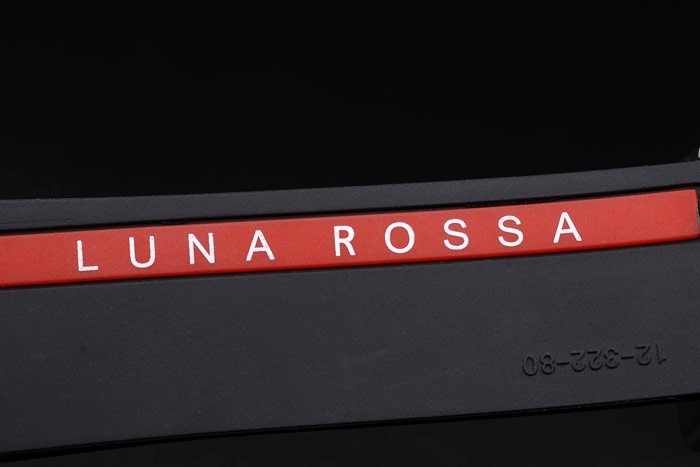 Bracelet: struktur svart gummiband med rostfritt stål tryckknapp krok lås, värme präglade röda månen gravyr och Hublot inscriptions