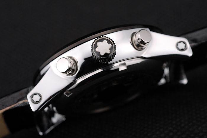 Crown: Ion-pläterad cutwork krona med MontBlanc logotyp och två polerat rostfritt stål tryckknapp kronor på ömse sida av it