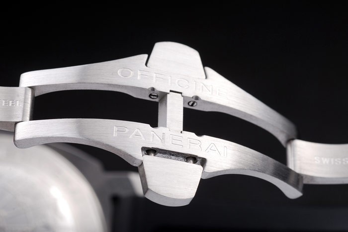 Bracelet stål: Svart gummiband med värme präglade Officine Panerai rem och borstat rostfritt stål utfällbar i krok clasp