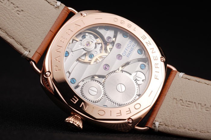 Tillbaka: Rose-guld kantad transparent skruvas ned tillbaka med Officine Panerai Firenze 1860 ingraverat på it