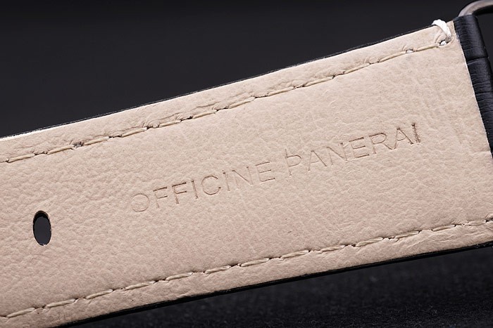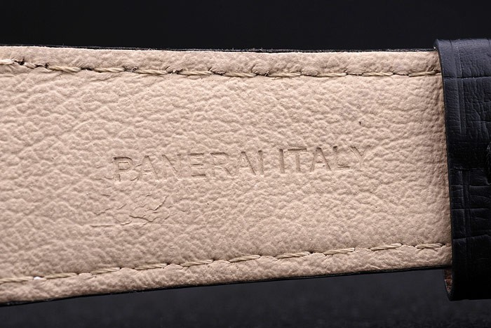 Denna klocka har AR glas. Ansiktet färg visas olika färger beroende på hur ljuset faller på itBack: skruv, fast 440 rostfritt stål, graverad med Panerai name