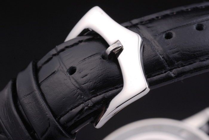 Bracelet rostfritt stål: Svart läderrem med Patek Philippe stämpel och en krok i rostfritt stål spänne clasp