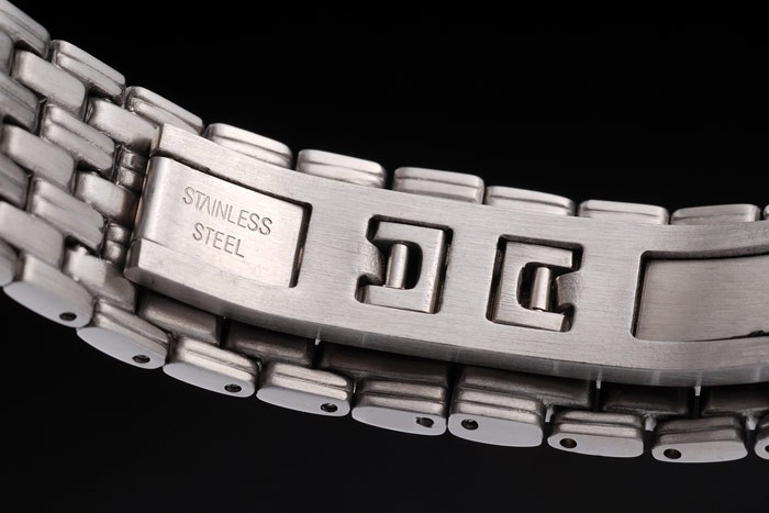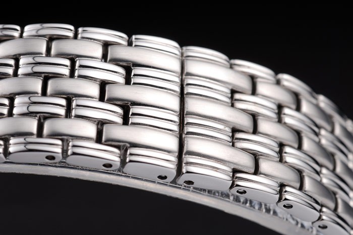 Tillbaka: Polerat rostfritt stål skruvas ned tillbaka med Piaget inscriptions