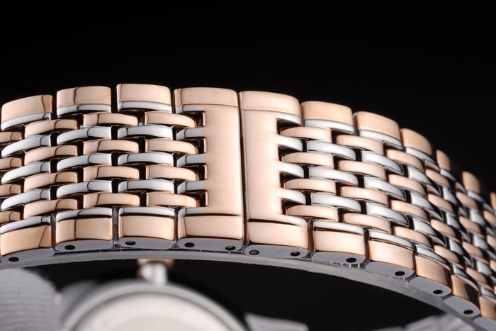 Bracelet: Fint kopplade rose-guld och polerat rostfritt stål armband med dold clasp