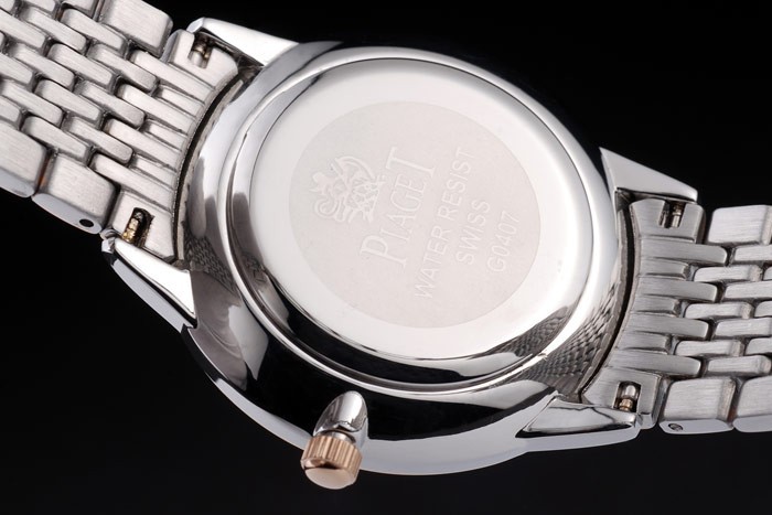 Tillbaka: Polerat rostfritt stål snap-in tillbaka med Piaget engravings