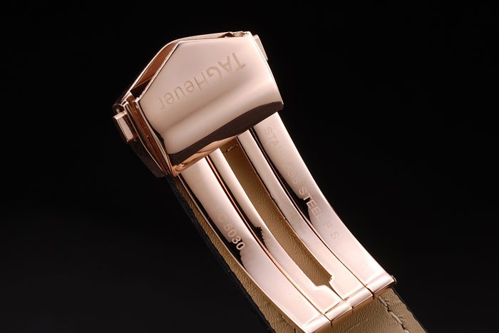 Bracelet: Heat präglade Tag Heuer svart krokodil läderrem med rose-guld tryckaren vikas över lås med tag Heuer logo på top