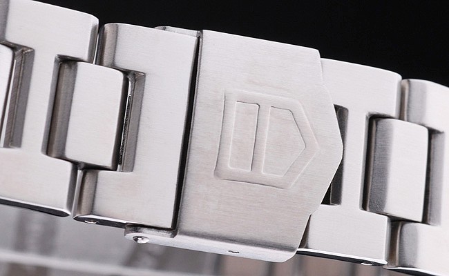 Bracelet: borstat rostfritt stål länk armband med Tag Heuer graverad fold-in clasp
