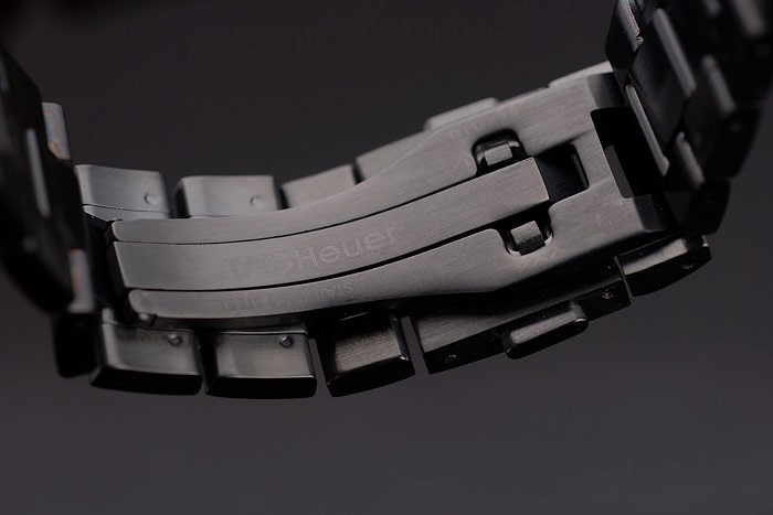 Bracelet rostfritt stål: Ion-plated rostfritt stål länk armband med Tag Heuer gravyr på toppen och en keramisk fold-over lås med tryckfrigör button