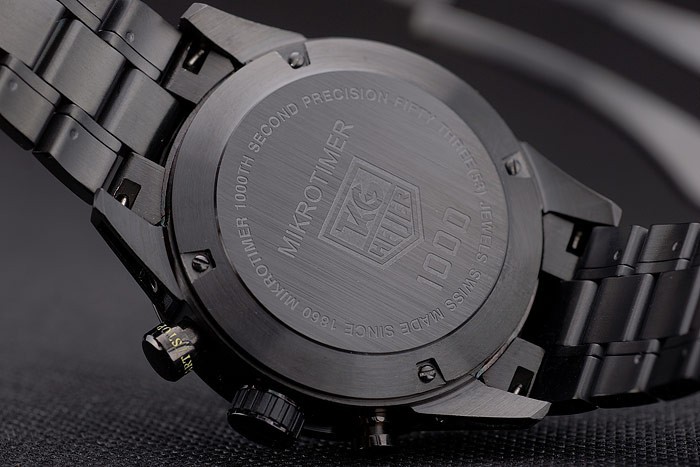 Tillbaka: Ion-plated skruvas ned tillbaka med Tag Heuer engravings