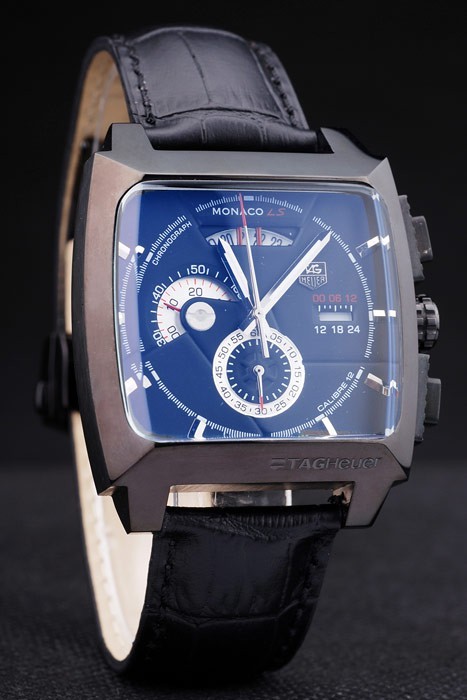 Crown: Ion-klädd cutwork krona med Tag Heuer logotyp och två rektangulära tryckknapps kronor på ömse sidor om it