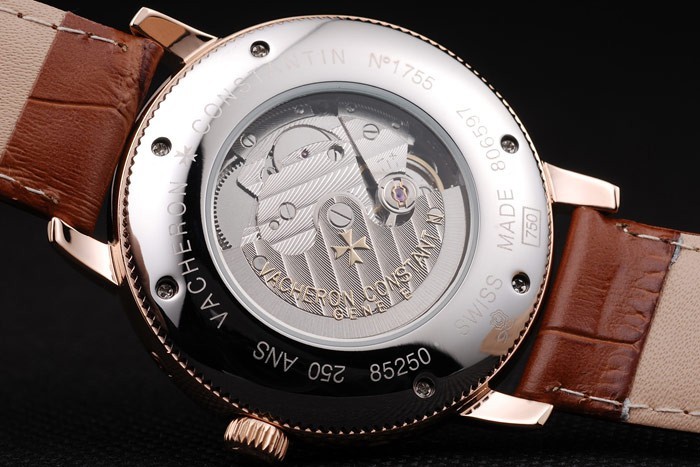Tillbaka: Rostfritt stål skruvas ned tillbaka med transparent centrum och Vacheron Constantin engraving